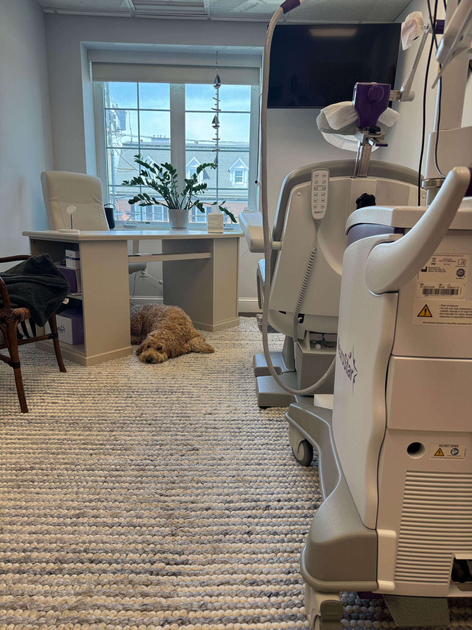 Thunder and Carson, our in-office therapy dogs, help create a calming, supportive environment for our patients. Trained to assist those experiencing anxiety, they offer quiet companionship and emotional comfort during sessions.